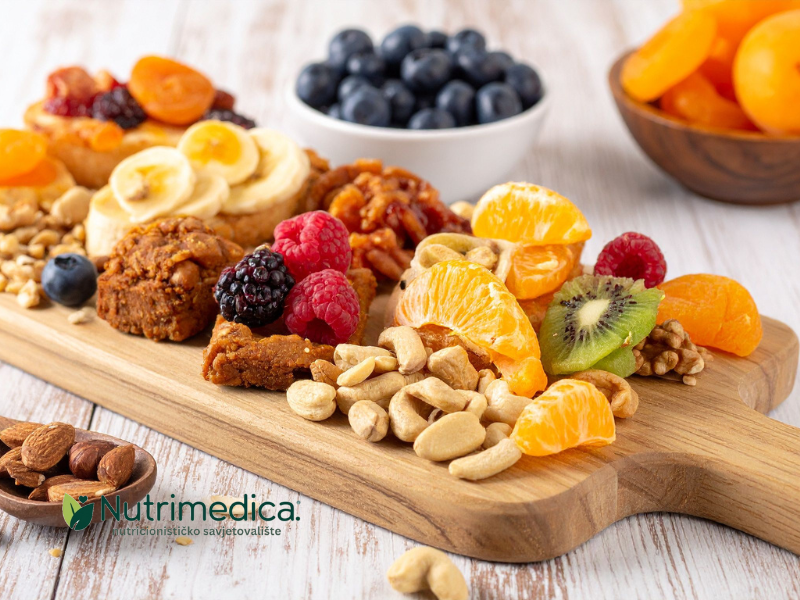 Vlakna i ugljikohidrati sa niskim glikemijskim indeksom (npr. integralni kruh, zobene pahuljice, voće, kvinoja)
